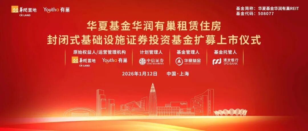 2026年1月12日,华夏基金华润有巢REIT扩募份额(基金代码:508077)在我所举行上市仪式。