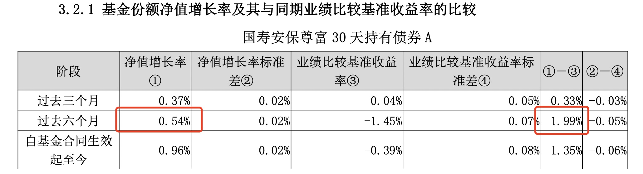 2025年下半年,债市震荡,中债新综合全价(总值)指数的收益率为-1.45%。但国寿安保尊富30天持有期债券在去年下半年却逆势实现正收益,其中A类份额的净值增长率达0.54%,并且实现了1.99个百分点的超额收益。