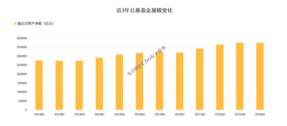 截至2026年一季度末,公募基金市场基金数量共13845只,资产净值37.31万亿元,同比增长13.98%。